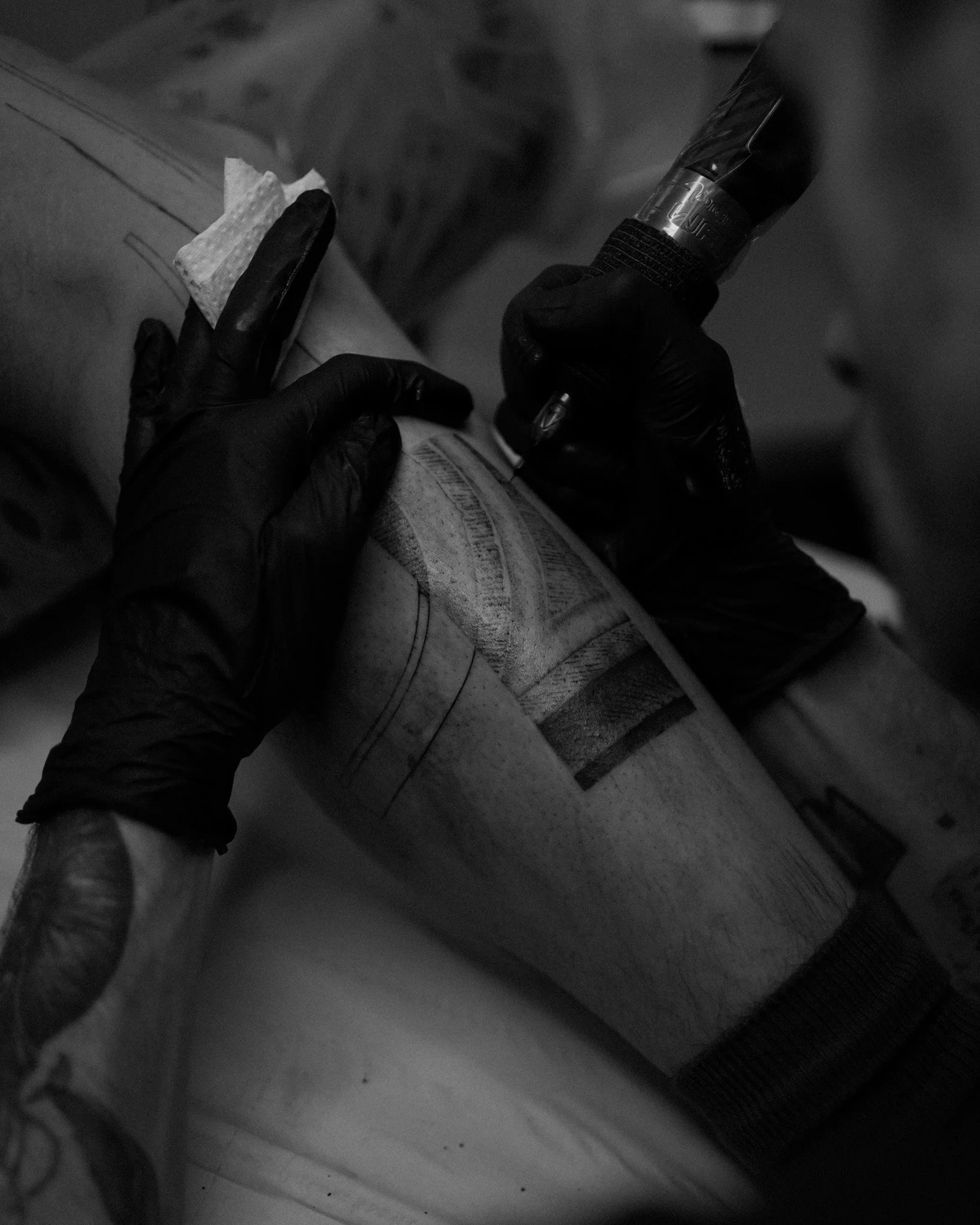 Our studio has a new home in 2026! We have restored part of an old customs building near to the water to create a contemporary tattoo and art gallery space. We have some great neighbours, including a delicious coffee shop right next door, and if you take a few steps further you’ll find yourself walking along a tree-lined river as it flows out into the sea.